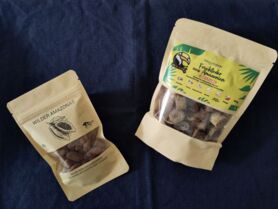 Die Wildkakaobohnen kommen aus dem Wildkakao-Projekt am Rio Purus in Amazonien. Sie sind schokoliert mit 71% "Wilder Amazonas" Schokolade.
