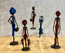 Der Allerweltsladen hat wieder neue Bronze-Skulpturen. Diese werden in Burkina Faso hergestellt. Die Arbeit mit Bronze ist dort ein traditionelles Handwerk. Die Künstler*innen arbeiten mit Bronze, das heute aus dem Recycling von alten Armaturen wie Wasserhähnen oder Teilen aus Klimanlagen stammt. Jede Figur ist ein Unikat.
